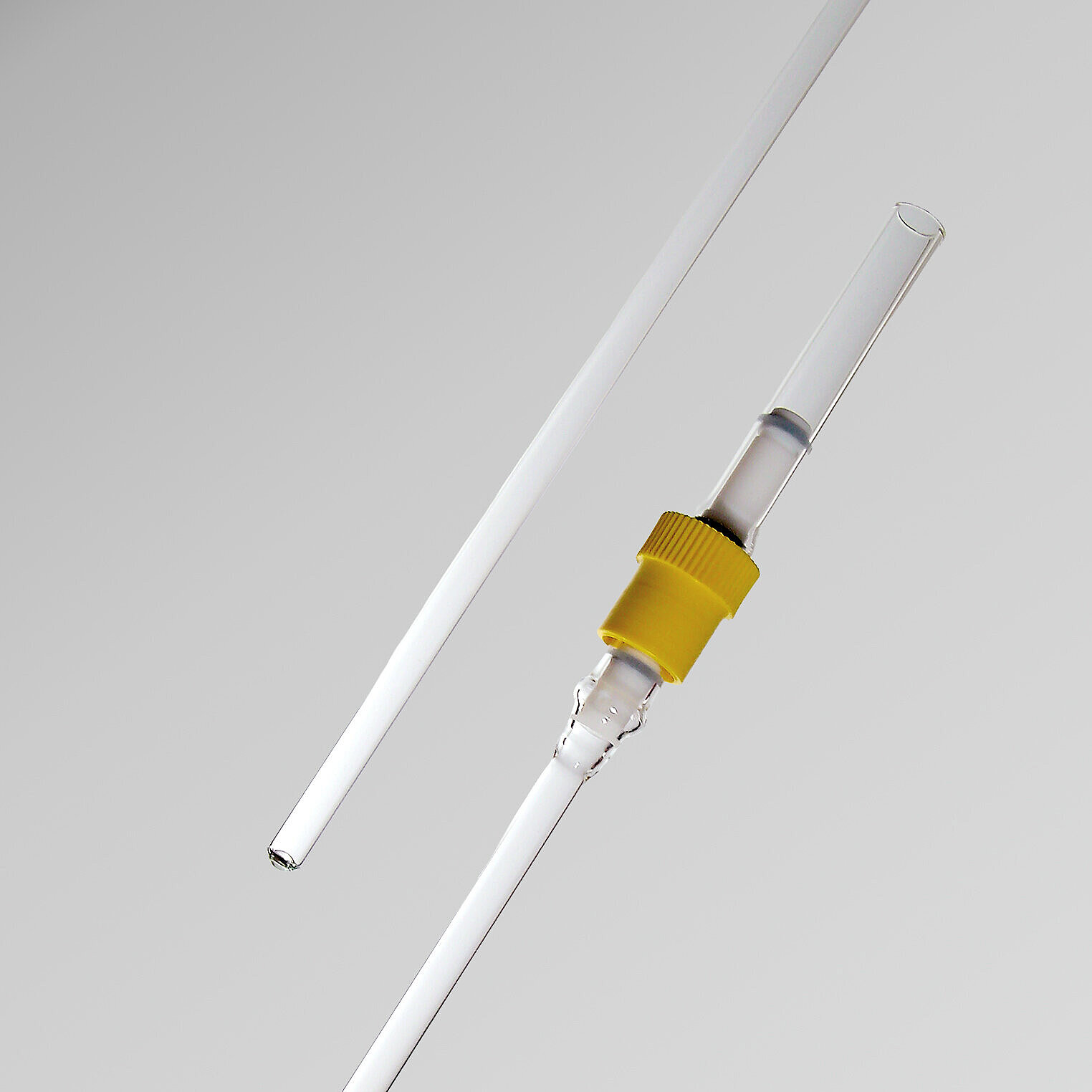 Hierzu bieten wir die Röhrchen zum einen mit den bekannten J-Young Ventilen von Hersteller GPE an, welche über ein aufgesetztes Glasrohr am oberen Ende an eine Vakuumleitung aus Glas angeschmolzen werden können. Die günstigeren und einfacheren J. Hilgenberg Ventile können über einen direkten Anschluss via Schlauchtülle an einen Vakuumschlauch direkt angeschlossen werden, was deutlich einfacher in der Handhabung ist.