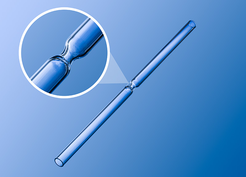 Wir fertigen Glasrohre und Glaskapillaren mit gezielten Einschnürungen des Durchmesser. Diese Querschnittsverengung ermöglicht die Umsetzung von verschiedenen Anwendungen, wie z.B. eine Reduzierung des Durchflusses, das Halten eines Schwebekörper z.B. einer Kugel oder in Verbindnung mit einem Filter die Sedimentation einer Probe im Röhrchen.